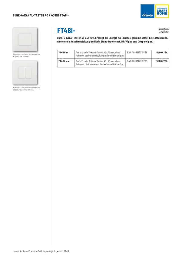 FT4BI-ww Eltako bezprzewodowy Przycisk nadtynkowy Zasięg maksymalny 30 m