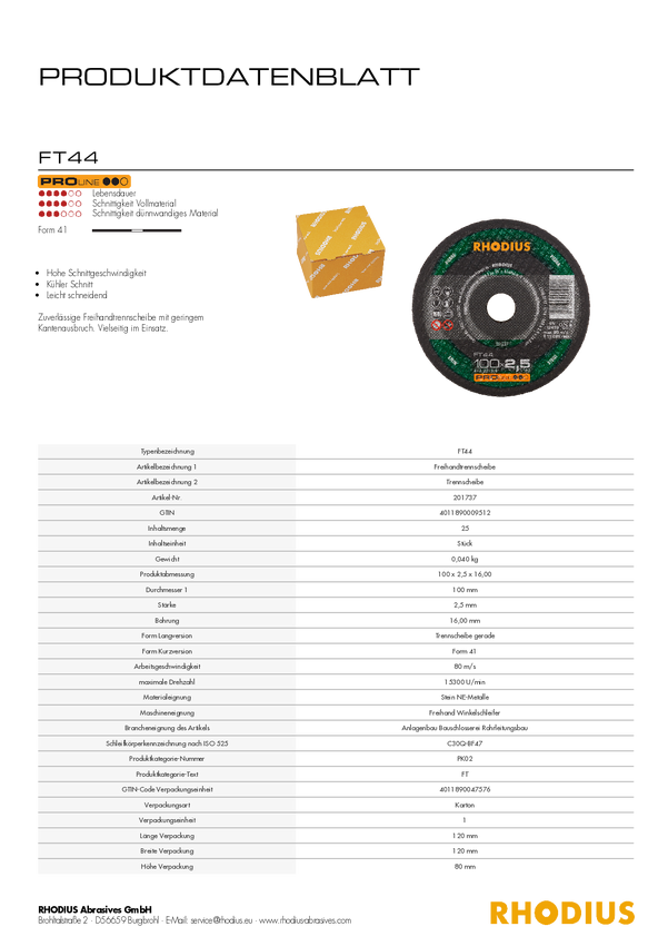 Zestaw tarcz tnących Rhodius FT44 201750 25 szt.