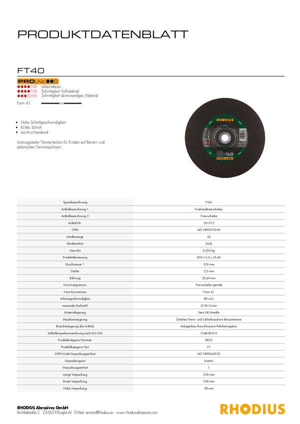 Zestaw tarcz tnących Rhodius FT40 201912 25 szt.