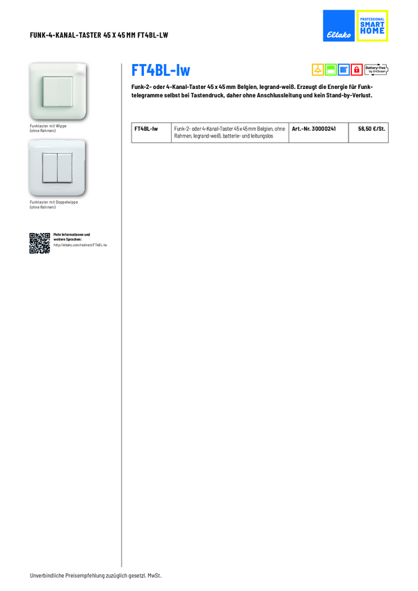 FT4BL-lw Eltako bezprzewodowy Przycisk nadtynkowy Zasięg maksymalny 30 m