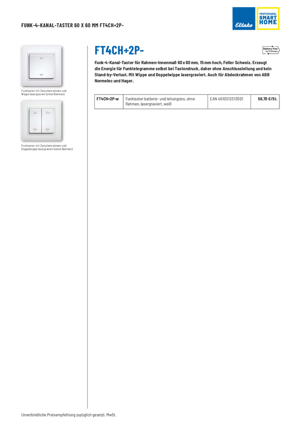 FT4B-nw Eltako bezprzewodowy Przycisk nadtynkowy Zasięg maksymalny 30 m