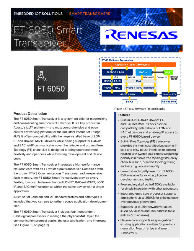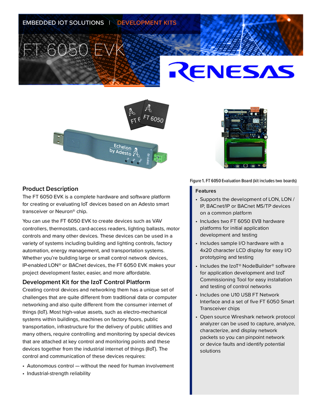 FT 6050 Smart Transceiver and Neuron 6050 Processor Development Platform for Creating LON, LON/IP, BACnet/IP Devices