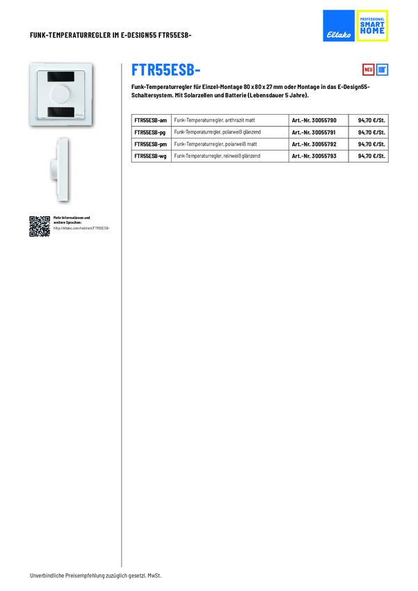 FTR55ESB-wg Eltako bezprzewodowy Regulator temperatury Zasięg maksymalny 30 m