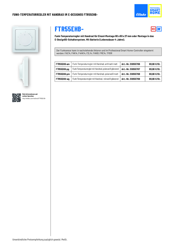 FTR55EHB-wg Eltako bezprzewodowy Regulator temperatury Zasięg maksymalny 30 m