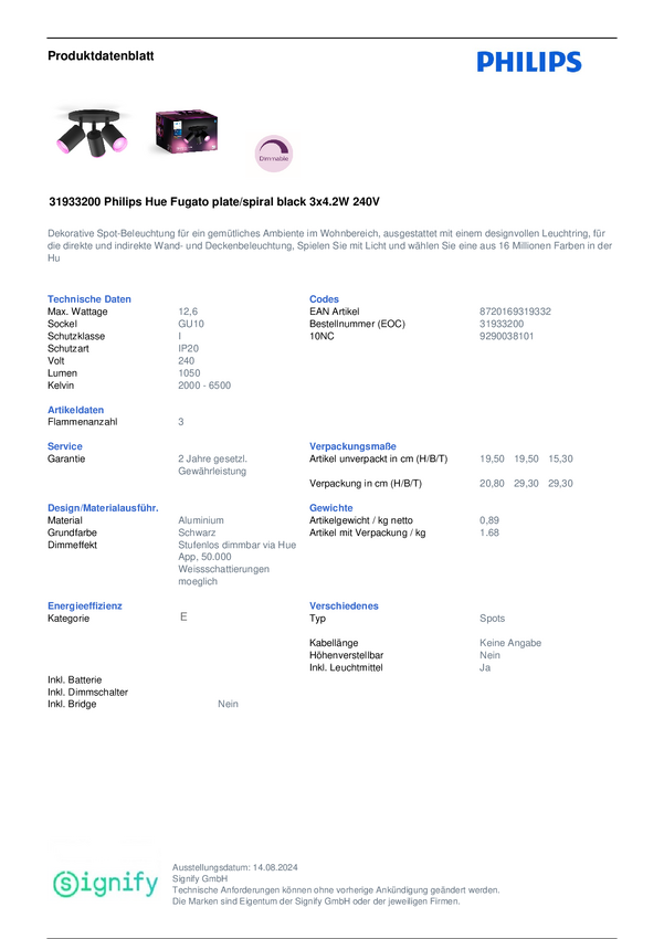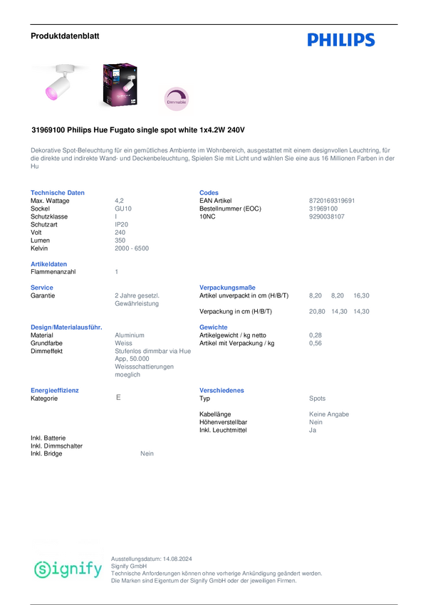 Reflektor sufitowy LED Hue Fugato 929003810701 4.2 W