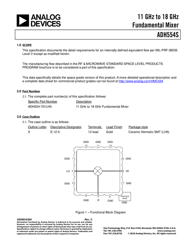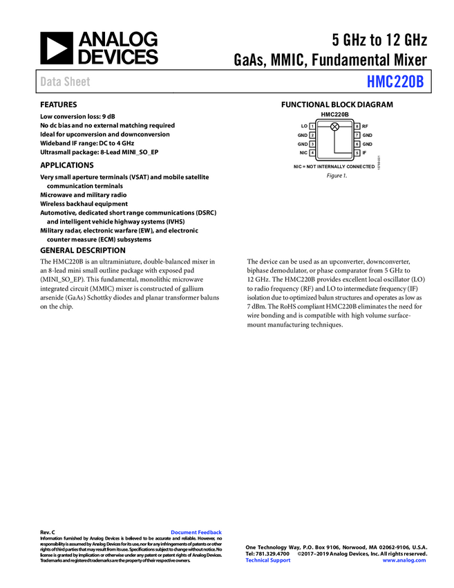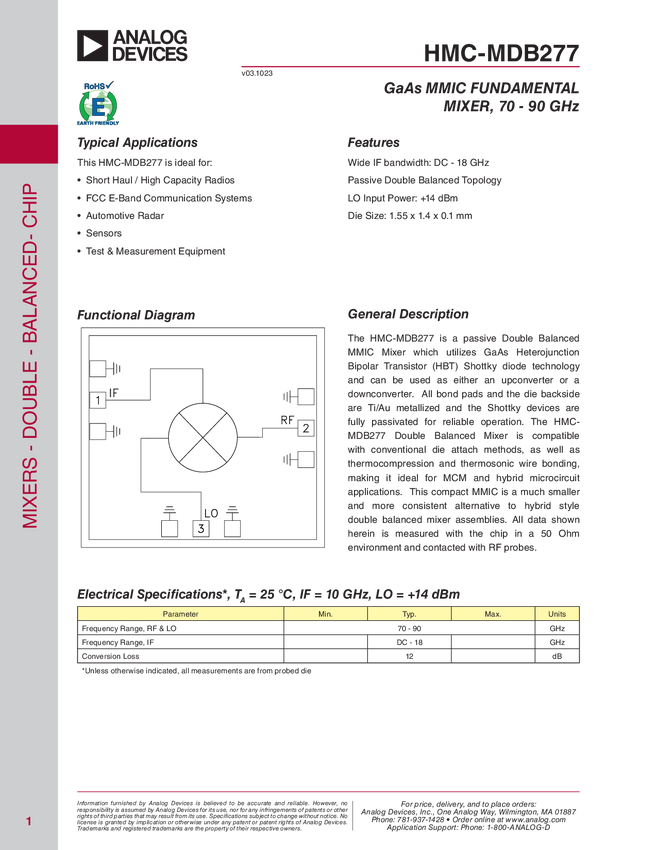5 GHz to 12 GHz GaAs, MMIC, Fundamental Mixer