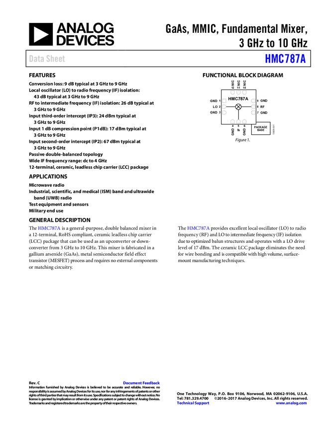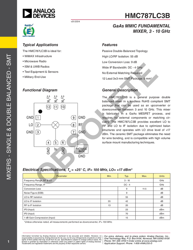 GaAs, MMIC, Fundamental Mixer, 3 GHz to 10 GHz