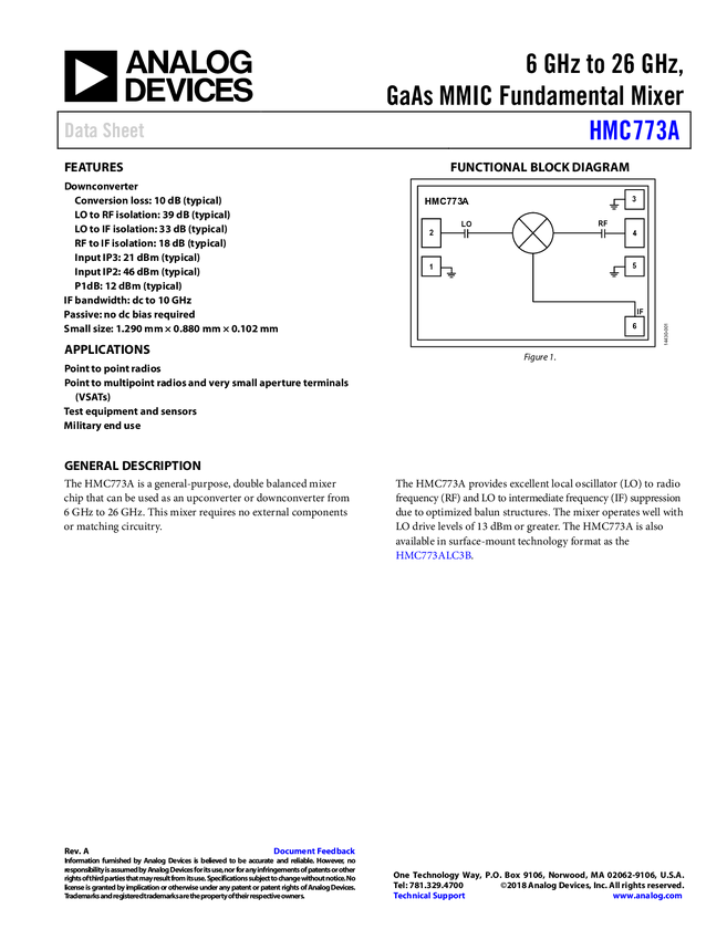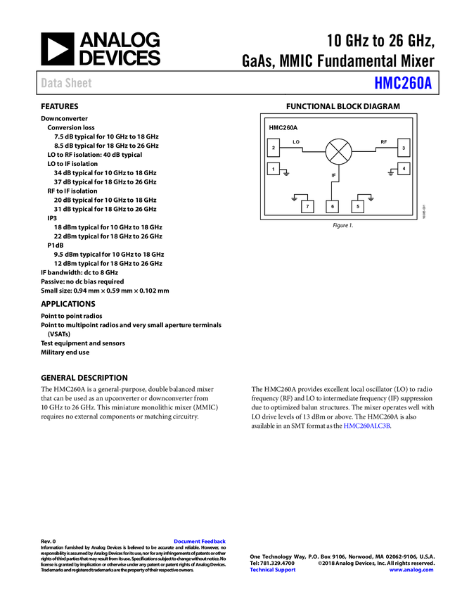 10 GHz to 26 GHz, GaAs MMIC Fundamental Mixer