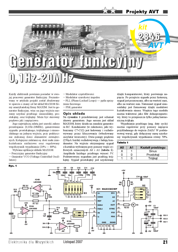 AVT1327 Mini generator funkcyjny