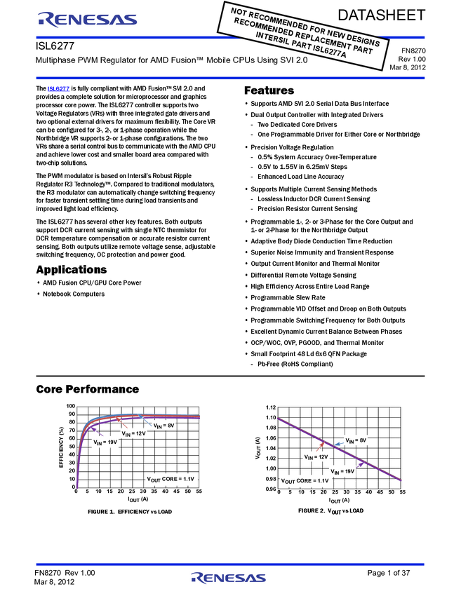 Multiphase PWM Regulator for AMD Fusion™ Mobile CPUs