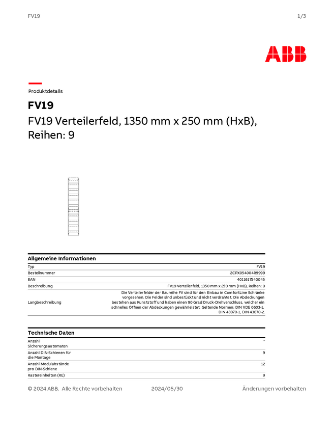 Striebel & John 2CPX054012R9999 FV19A3 Panel dystrybucyjny Ilość modułów = 12 Content 1 szt.