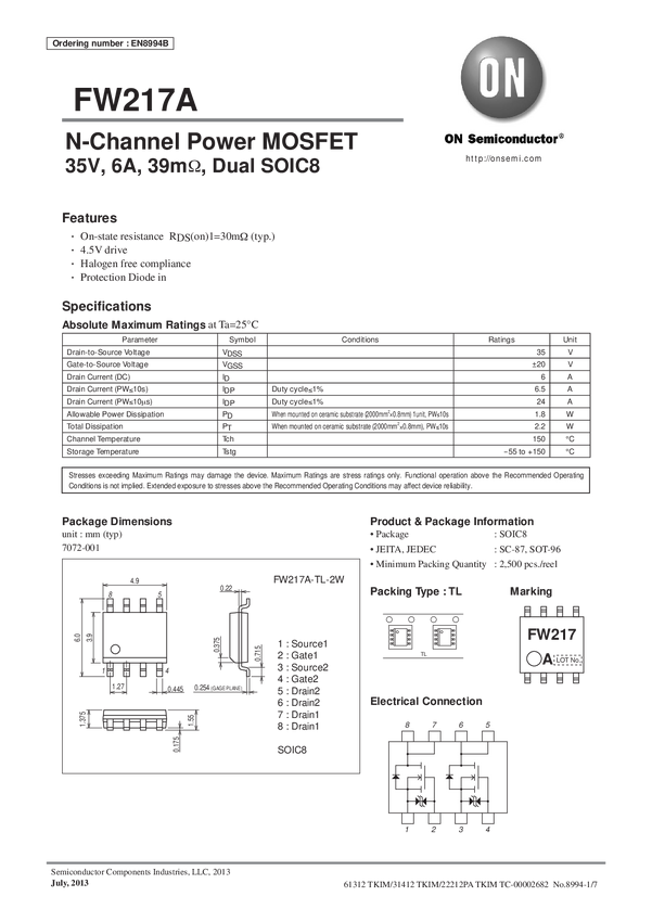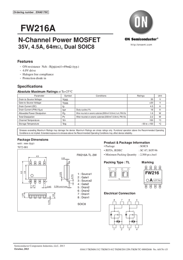 N-Channel Power MOSFET, 35V, 4.5A, 64mΩ