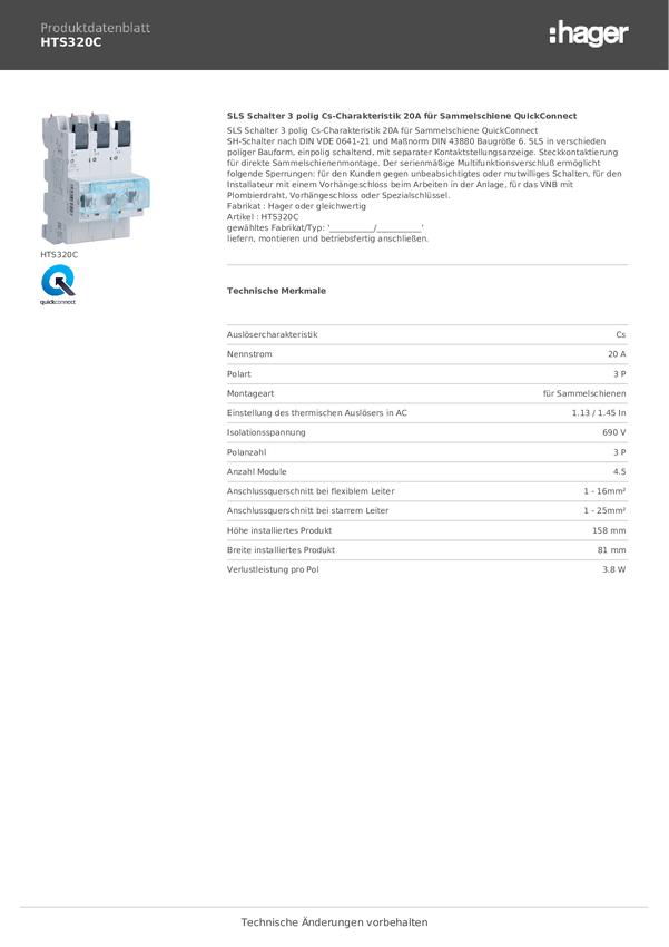 Hager HTS320C Wyłącznik główny bezpieczeństwa 20 A 400 V
