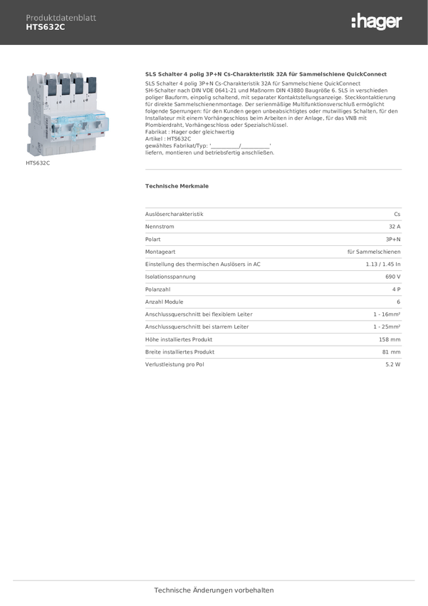 Wyłącznik główny bezpieczeństwa Hager HTS332C, 400 V, 32 A