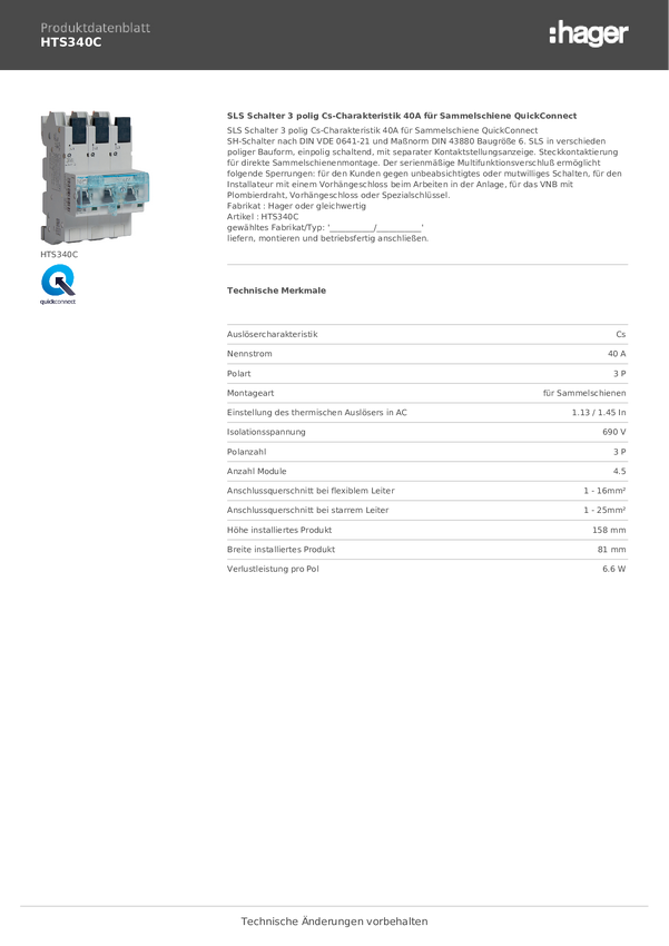 Hager HTS340C Wyłącznik główny bezpieczeństwa 40 A 400 V