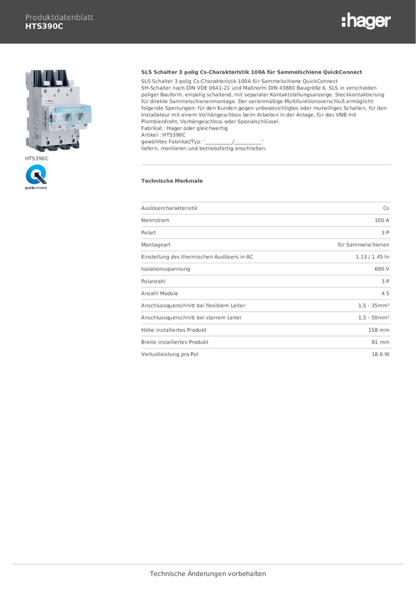 Hager HTS390C Wyłącznik główny bezpieczeństwa 100 A 400 V