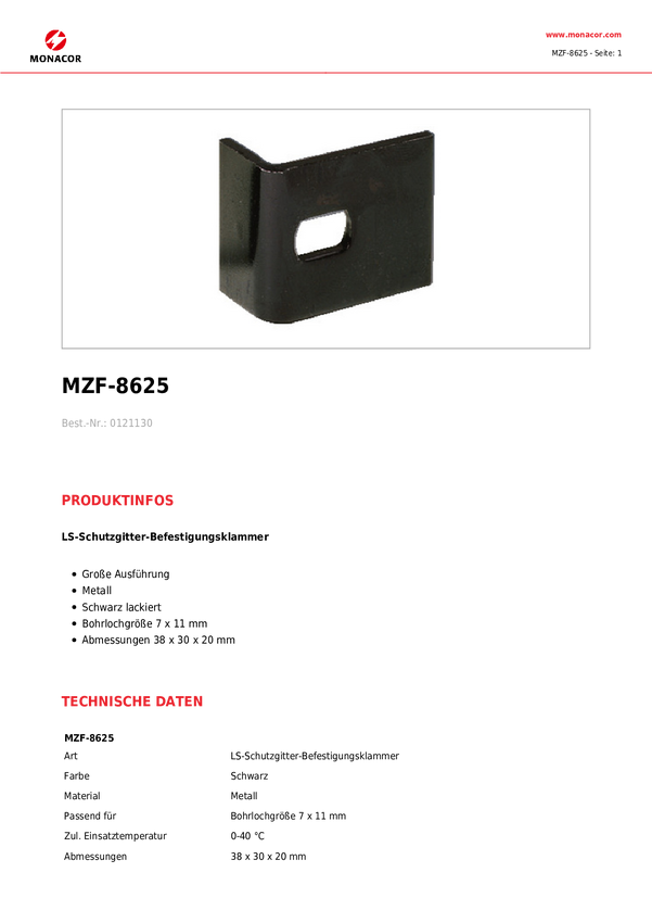 Monacor MZF-8625 Osłona głośnikowa (D x S x W) 30 x 20 x 38 mm