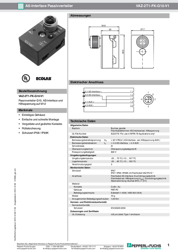 Rozdzielacz czujnik / element wykonawczy, pasywny Pepperl+Fuchs VAZ-2T2-FK-G10-V1 234518 1 szt.