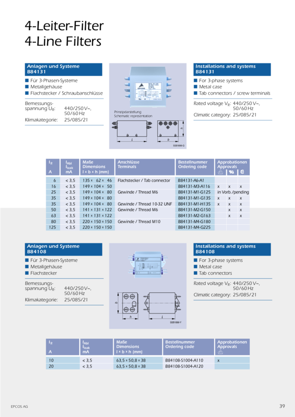Power Line Filter 50Hz/60Hz 16A 440VAC Screw Flange Mount