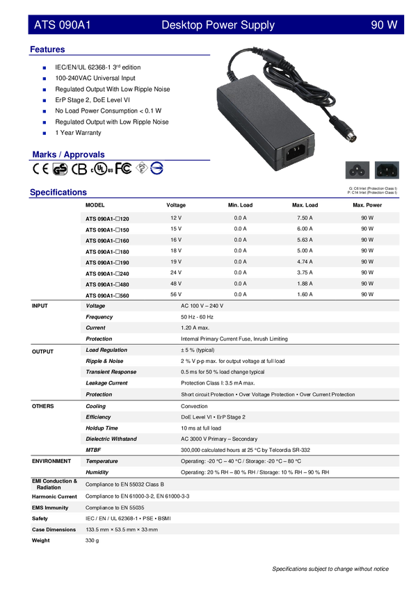 Zasilacz stołowy i wtykowy AC/DC Dehner Elektronik ATS 090A1-G240 ATS 090A1-G240 3.75 A 90 W stabilizacja