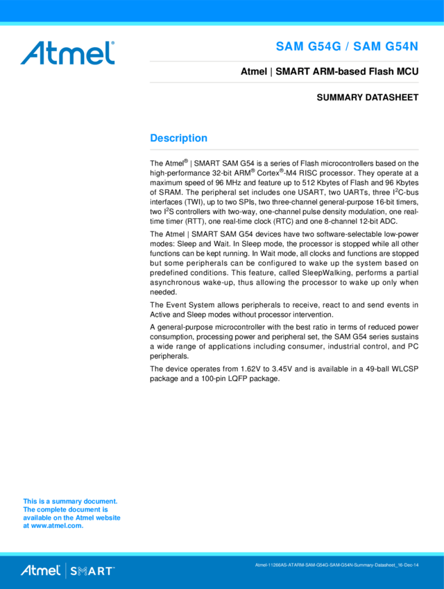 SAM G54 Series Datasheet