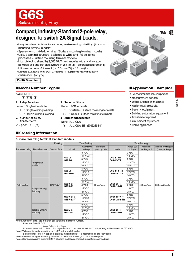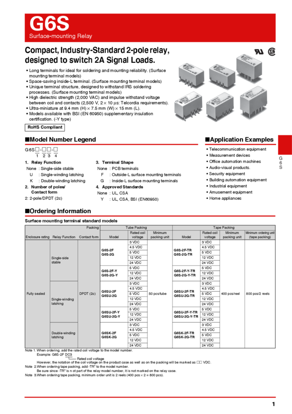 Przekaźnik SMT Omron G6S-2F 5 VDC 5 V/DC