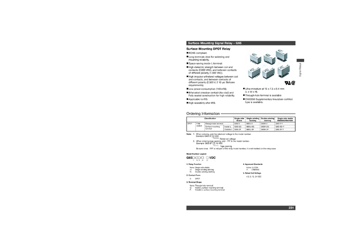 Electromechanical Relay DPDT 2A 5VDC 178Ohm Surface Mount