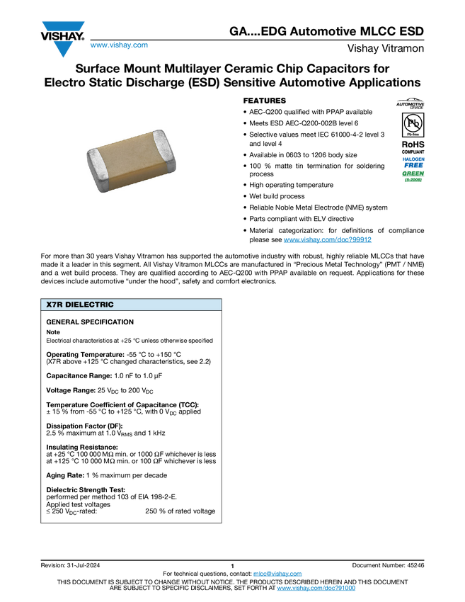 Surface Mount Multilayer Ceramic Chip Capacitors for Electro Static Discharge (ESD) Sensitive Automotive Applications