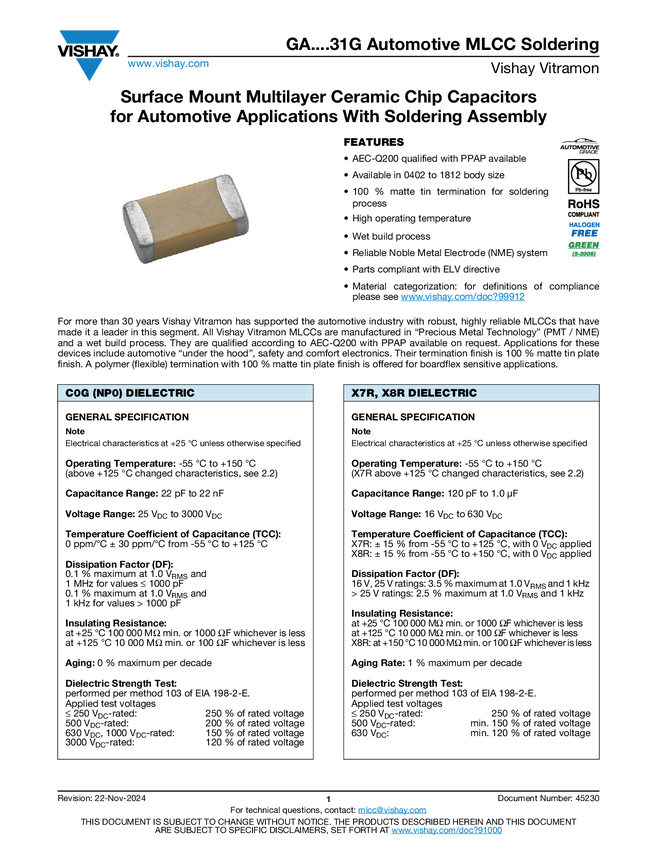 Surface Mount Multilayer Ceramic Chip Capacitors for Automotive High Frequency Applications
