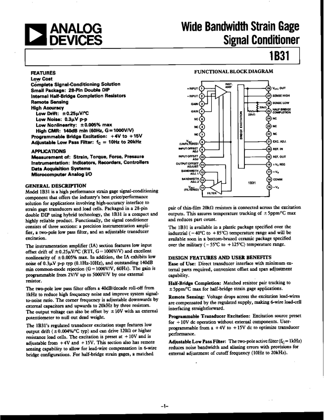 High Pertormance, Economy Strain Gage/RTD Conditioners