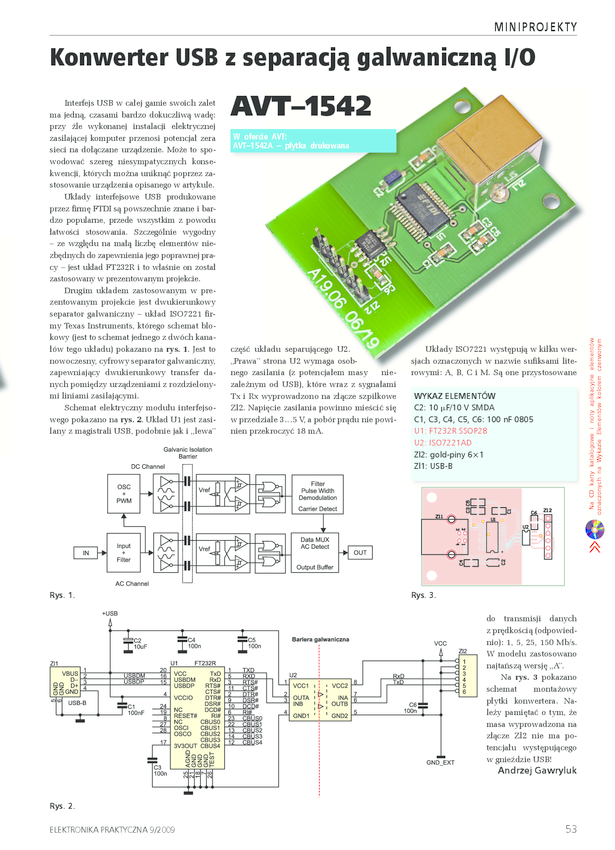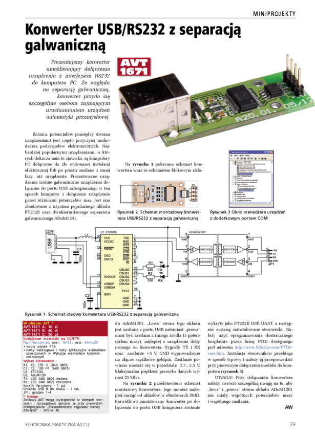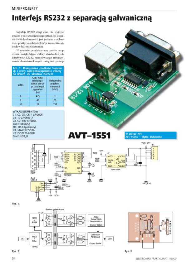 AVT1671 Konwerter USB - RS232 z separacją galwaniczną