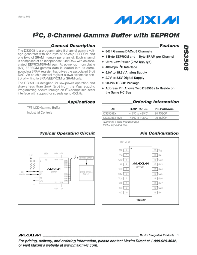 DS3508 I&#178C, 8-Channel Gamma Buffer with EEPROM