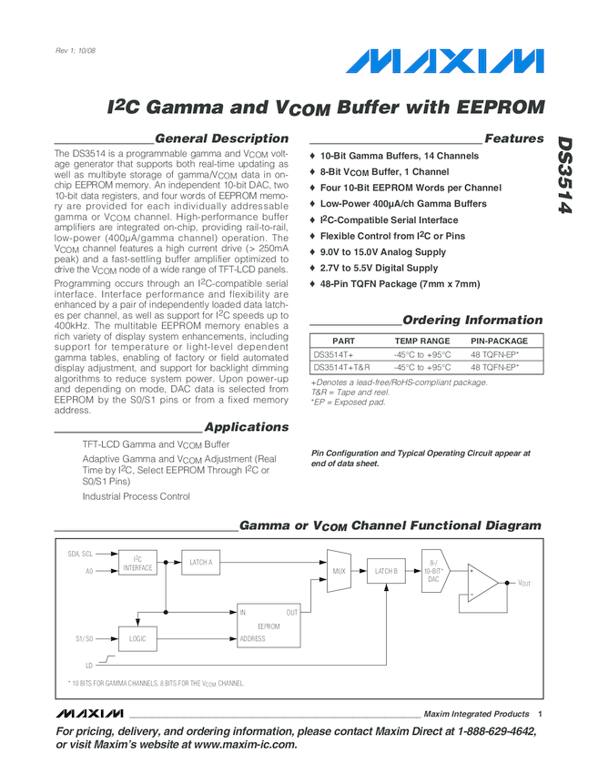 DS3514 I&#178C Gamma and VCOM Buffer with EEPROM
