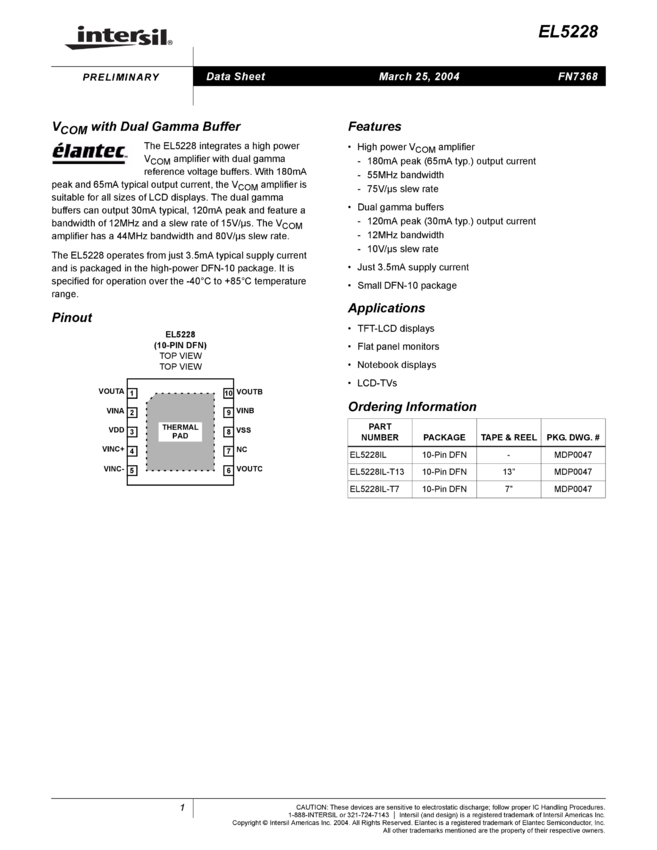 Dual VCOM Amplifier and Gamma Reference Buffer