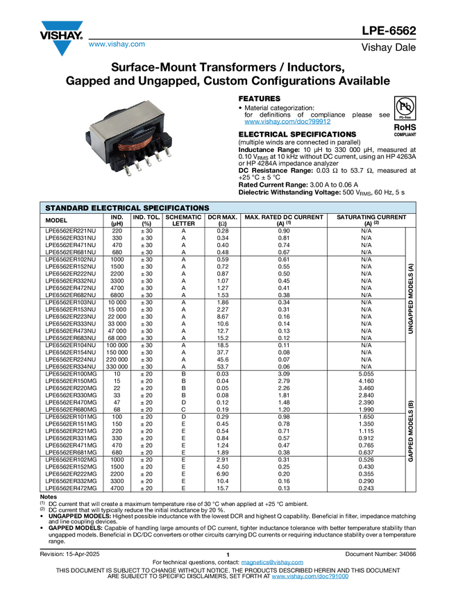 Surface Mount Transformers/Inductors, Gapped and Ungapped, Custom Configurations Available