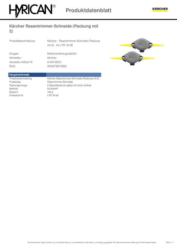 Nóż do podkaszarki Kärcher Home & Garden Kärcher 2.444-022.0 1 szt.