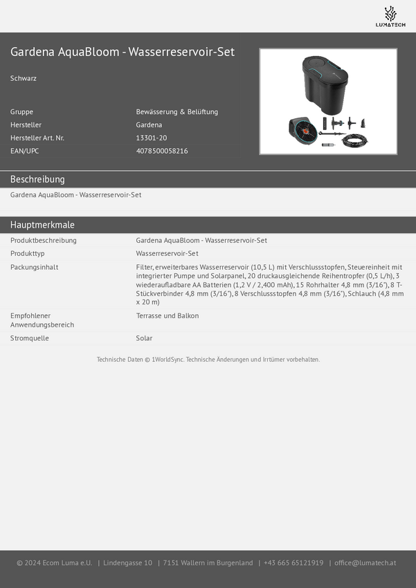Zestaw do nawadniania zasilany solarnie GARDENA 13301-20 1 szt.