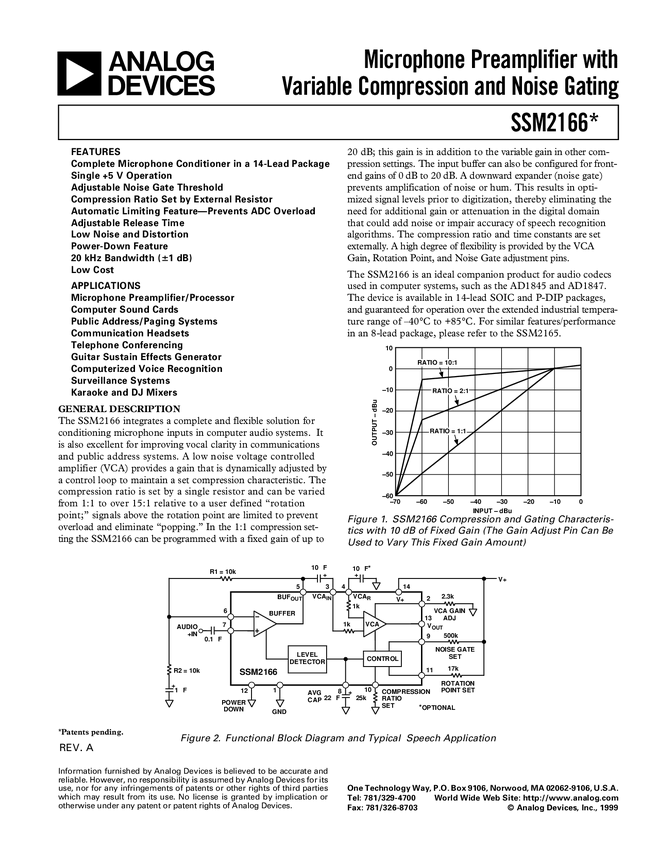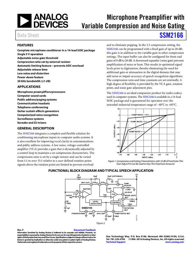 SSM2166: Complete Microphone Conditioner with Variable Compression & Noise Gating