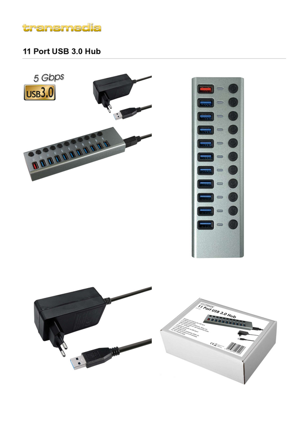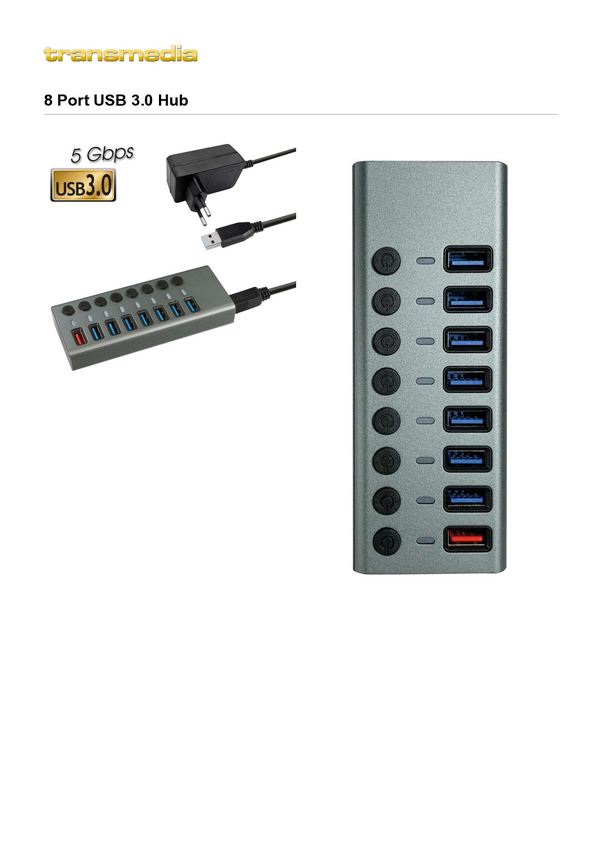 Maxtrack CH11L USB-Hub 8 USB-A USB 3.0 5 GBit/s indywidualne wyłączanie srebrno-szary CH11L