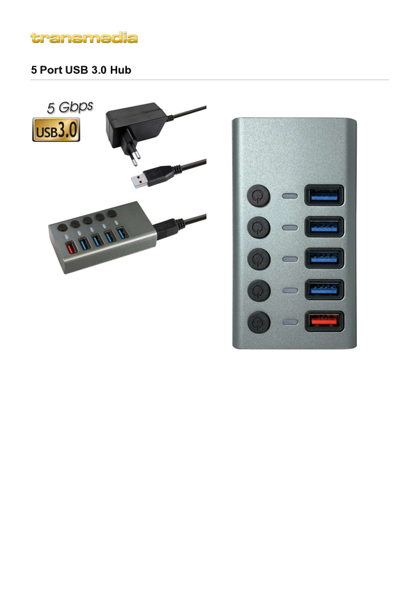 Maxtrack CH10L USB-Hub 5 Portów USB-A USB 3.0 5 GBit/s indywidualne wyłączanie srebrno-szary CH10L