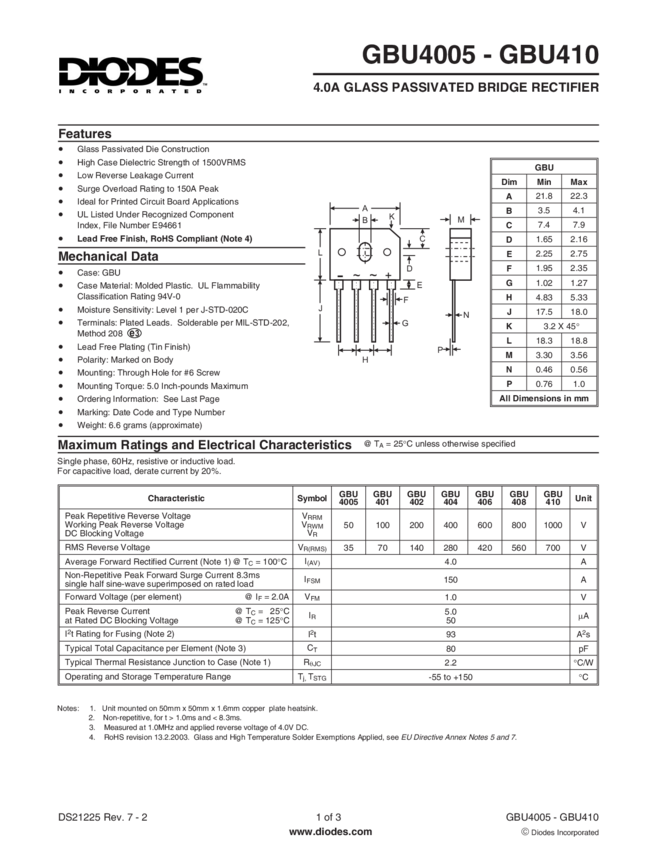 Mostek prostowniczy Graetza 4A, 800V, GBU HORNBY ELECTRONIC