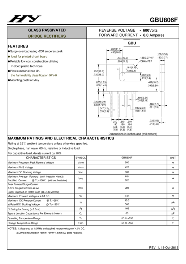 Taiwan Semiconductor GBU806 Prostownik mostkowy GBU 800 V Strzałka - poczwórna tuba