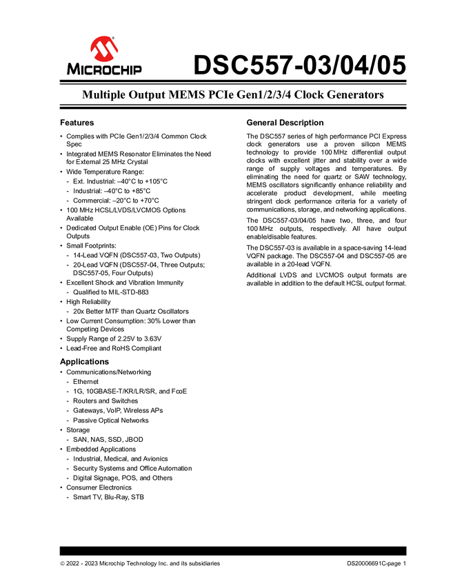 DSC557-03-04-05 - Multiple Output MEMS PCIe Gen1/2/3/4 Clock Generators