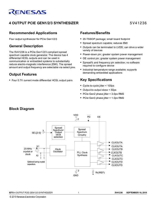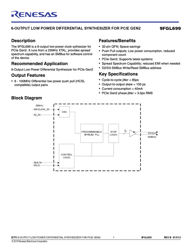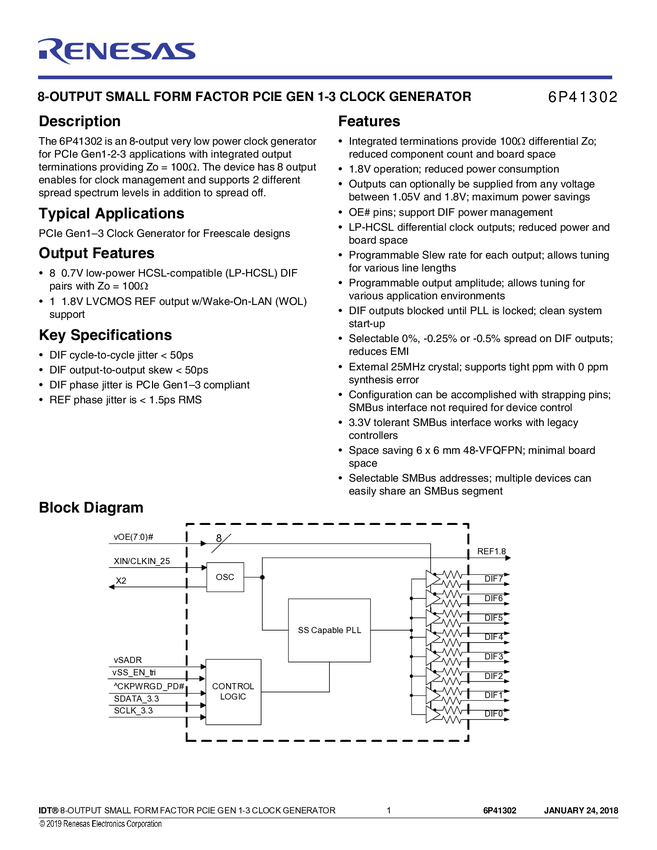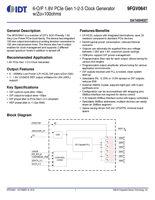 6-output 1.8 V PCIe Gen1-2-3 Clock Generator with Zo=100 ohms