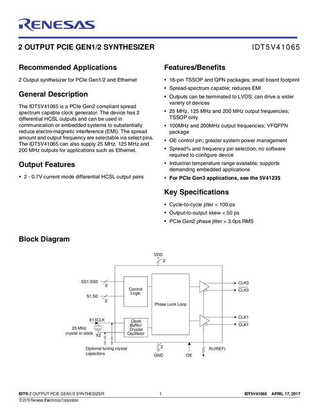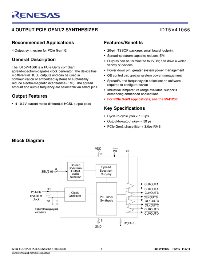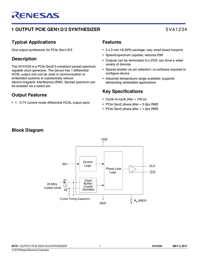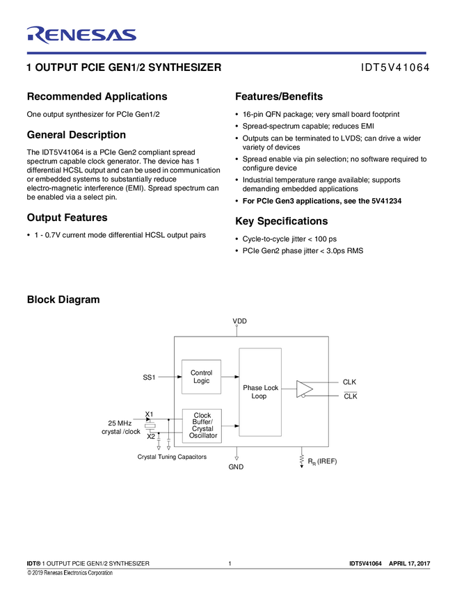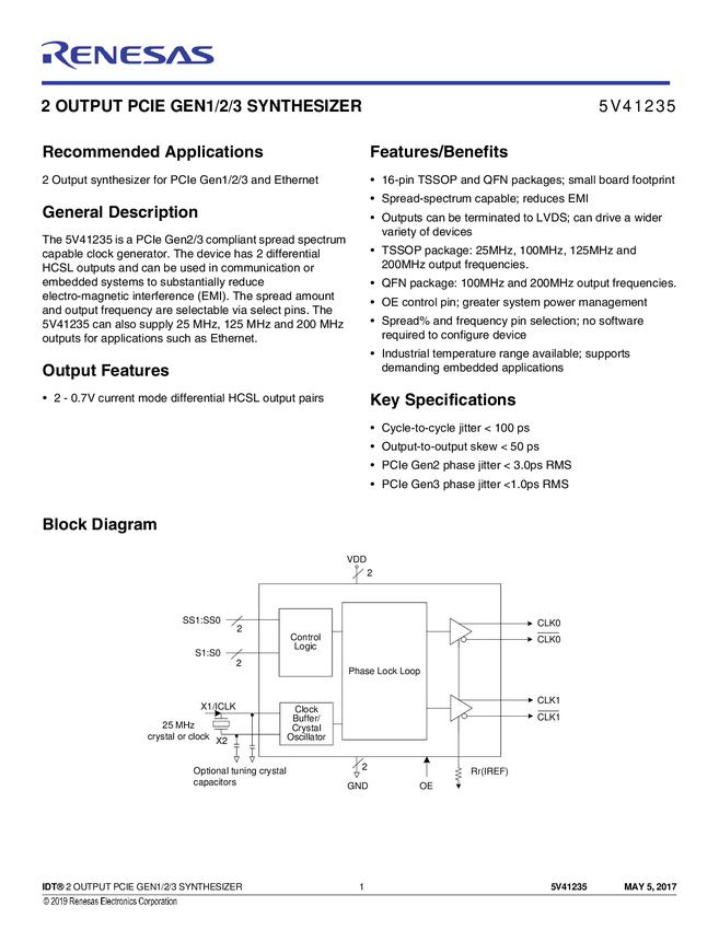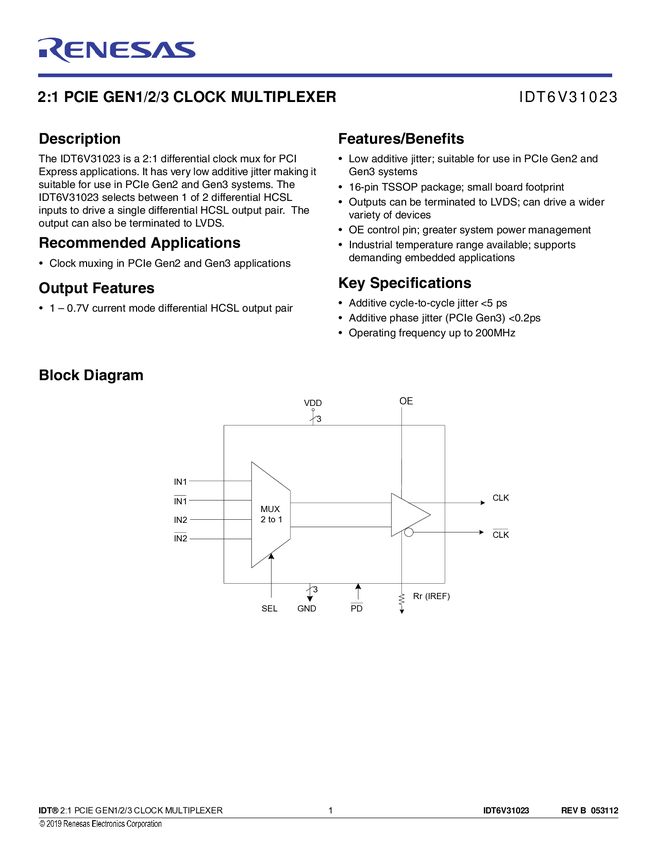 2:1 PCIe Gen1/2/3 Clock Multiplexer