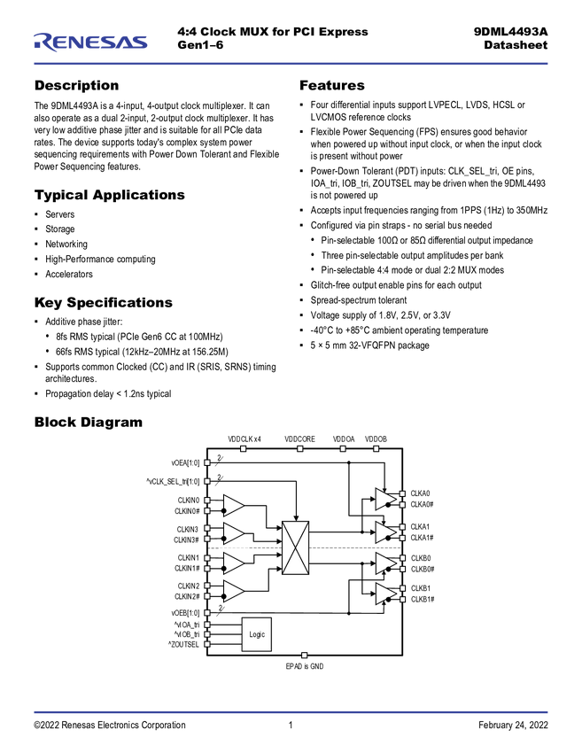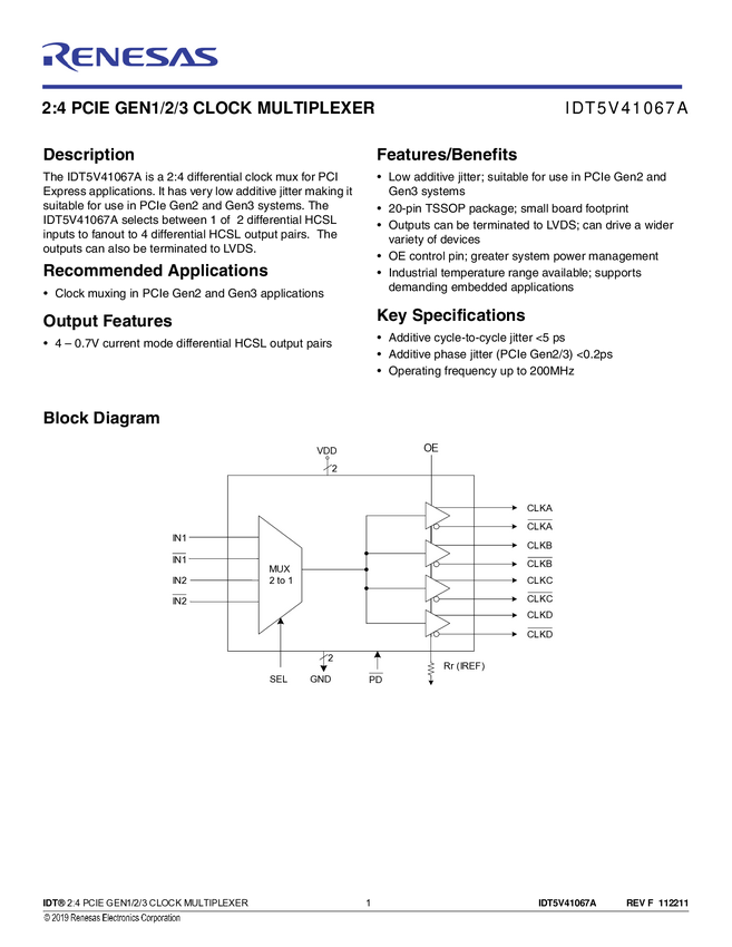 2:4 PCIe GEN1/2/3 Clock Multiplexer