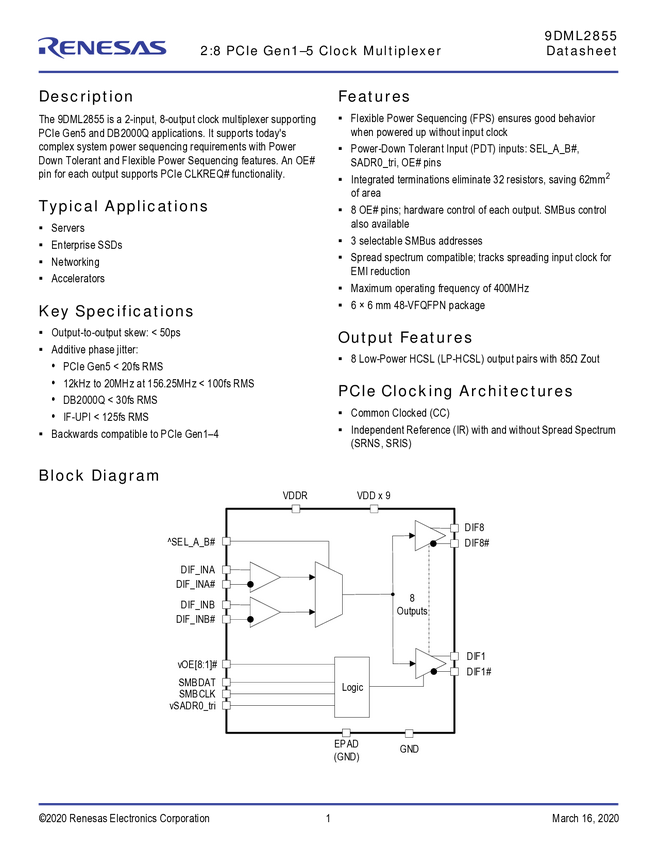 2:8 PCIe Gen1–5 Clock Multiplexer