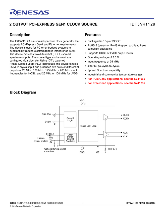 2:12 PCIe Clock Mux Gen1-5, Zo = 85ohm