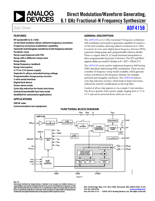 ADF4158: Direct Modulation/Waveform Generating, 6.1 Fractional-N Frequency Synthesizer