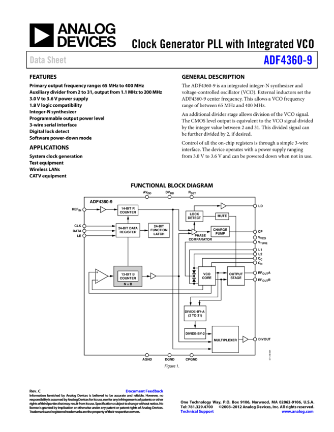 ADF4360-9: Clock Generator PLL with Integrated VCO